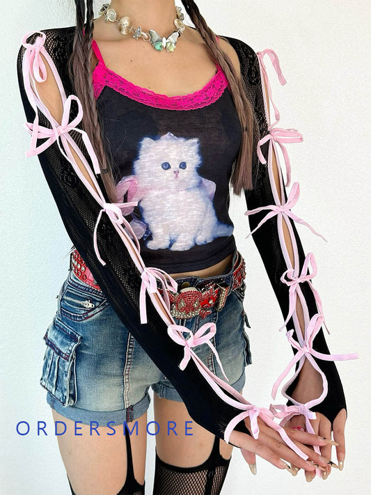 Y2K Lace-up Bow-knot Shawl Sleeves
