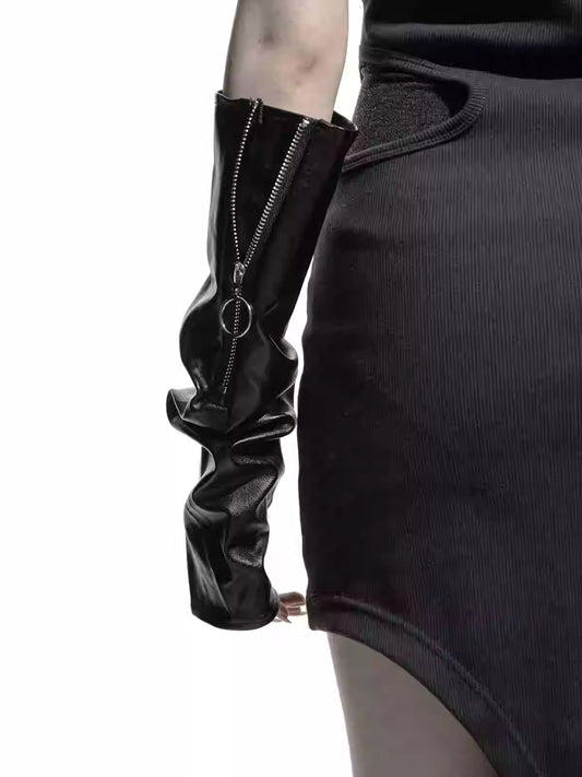 Y2K Punk PU Zipper Sleeve Gloves