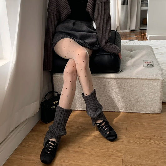 Y2K White Leg Warmers Floral Lace Pantyhose