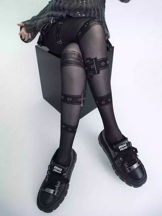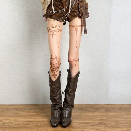Post-apocalyptic Style Tattoo Semi-sheer Pantyhose