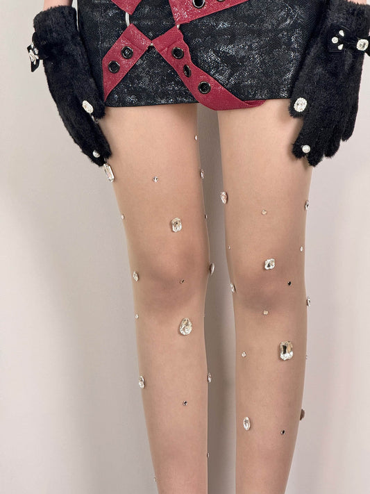 Y2K Bling Bling Star Black Semi-sheer Pantyhose