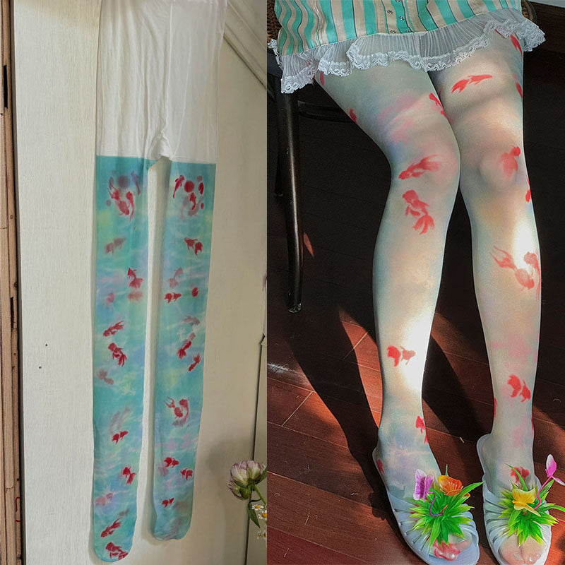 Y2K Goldfish Print Semi-sheer Pantyhose
