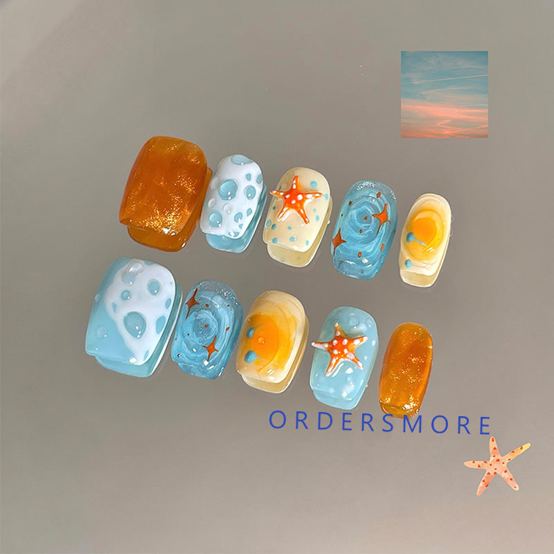 Cute Orange Soda Beach Press-on Nails